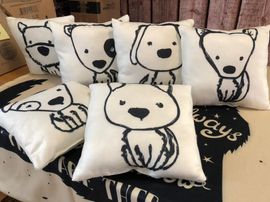 Artículos como cojines y frazadas personalizados, diseños como tu mascota en caricatura, fotos , imágenes o con la idea que gustes, creamos diseños que se puedan plasmar en cada uno de tus productos.
